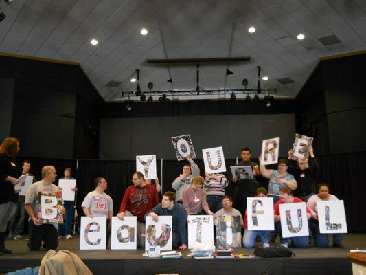 I've had the honor of being on staff as Assistant Director of the Jesters Program since 2011. Generous funding from USF, the Indiana Arts Commission, Anthony Wayne Services, and the National Endowment for the Arts (flagged Jesters as model program!) help us provide programming for 80 people (ranging from children to senior citizens) with a range of developmental disAbilities. The program also provides intern and employment opportunities, not only to the population we serve, but also to students (Jesters provided over 300 students with service hours one year gaining national attention for the University) and community members as well.